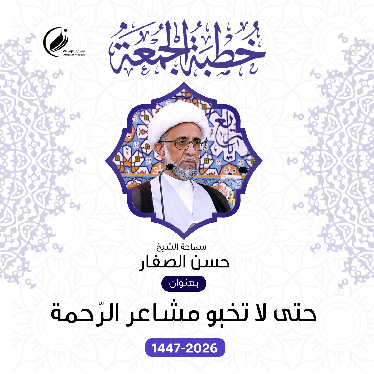جاء ذلك ضمن خطبة الجمعة 18 شعبان 1447هـ الموافق 6 فبراير 2026م، في مسجد الرسالة بالقطيف شرقي السعودية بعنوان: حتى لا تخبو مشاعر الرّحمة.